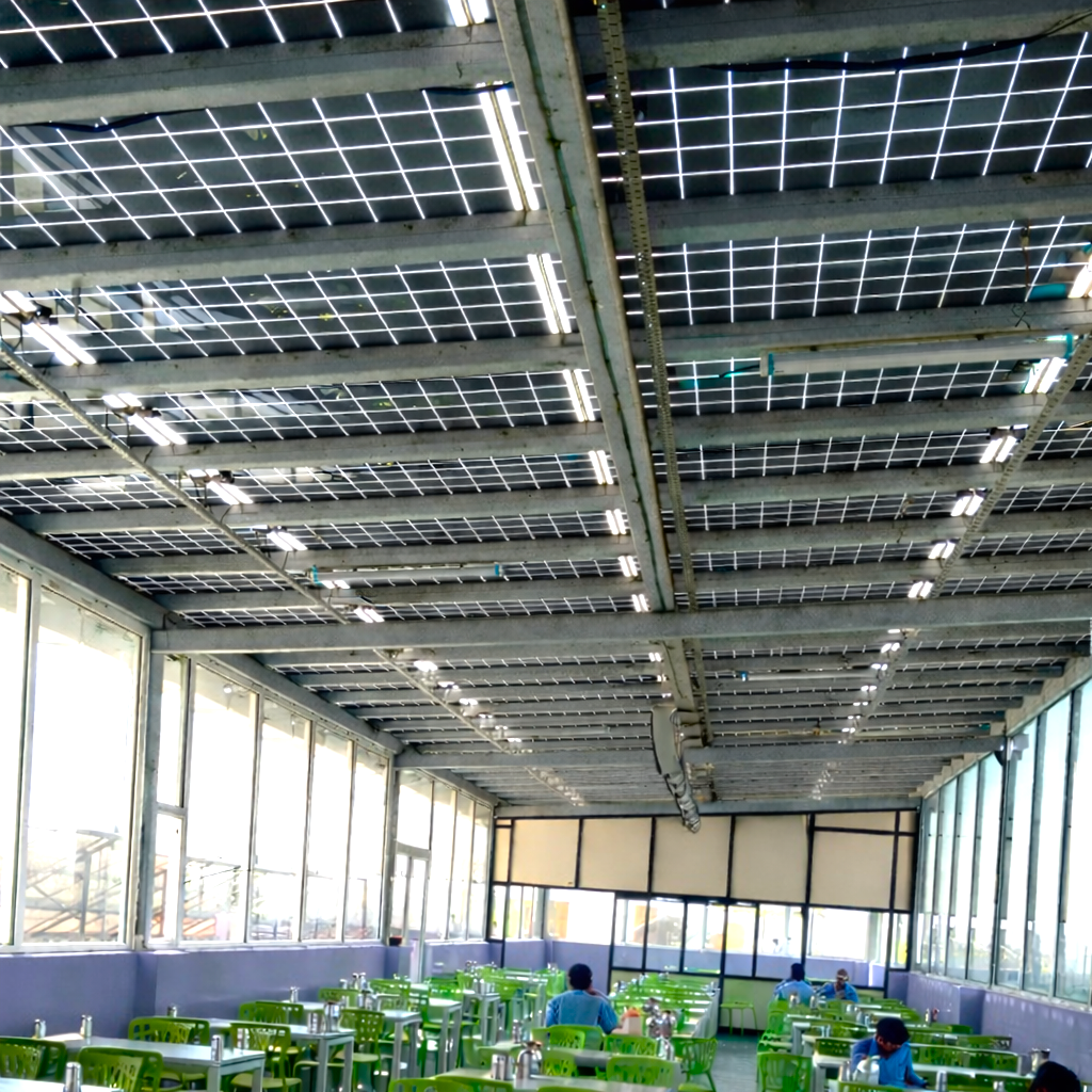 Figure 4: BIPV roof of staff canteen at Elcomponics Noida.  Source: Elcomponics