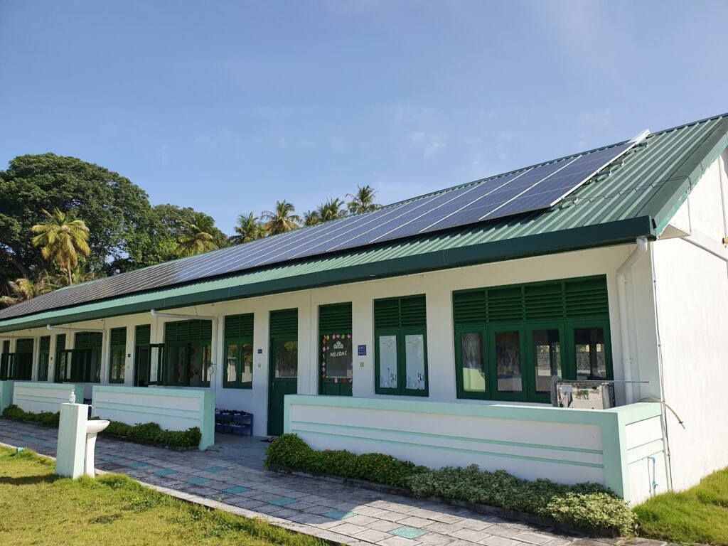 Figure 2: Solar Rooftop panels installed at a school in Maldives (BAPV). Photo: GSES