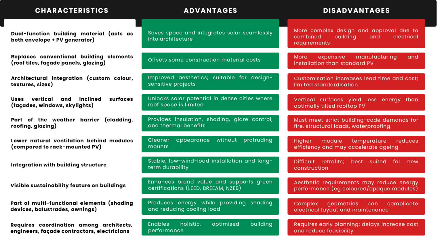 Figure 9: Advantages and Disadvantages of BIPV